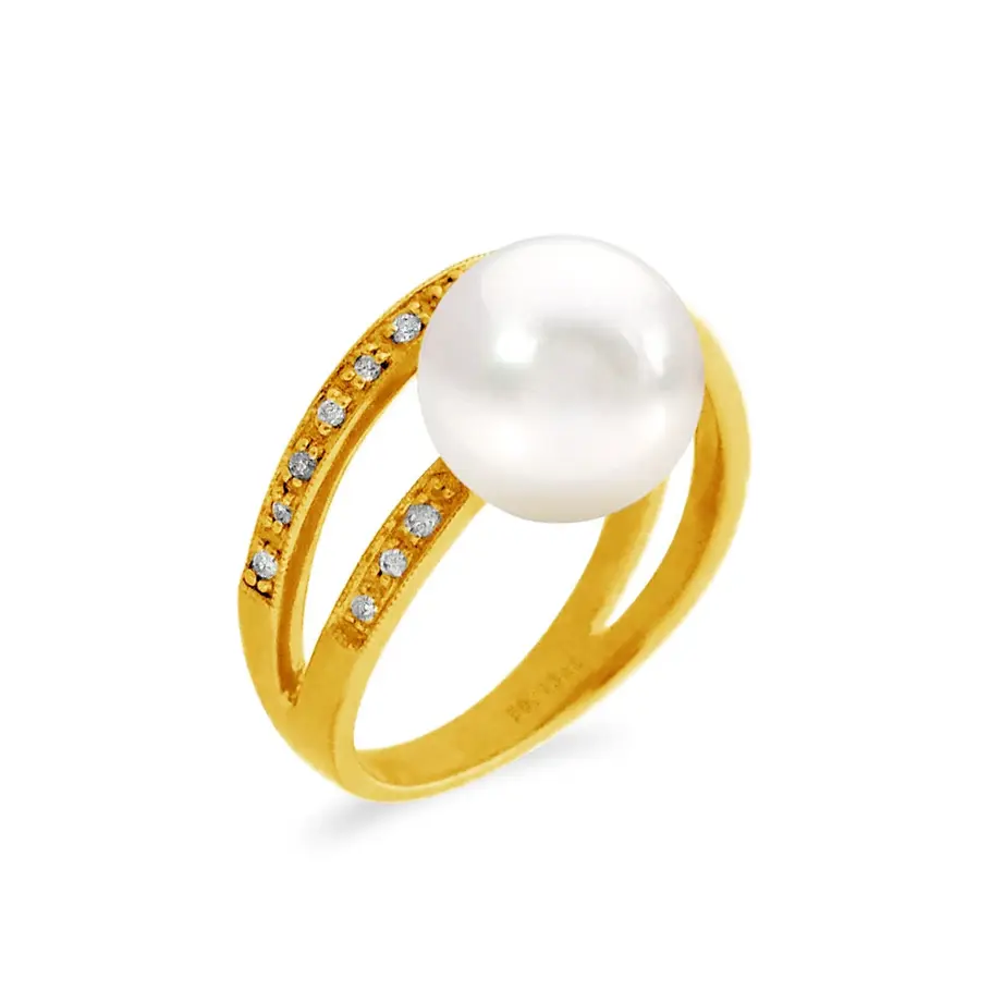 A fantastic ring with a white all-round QTV Akoya Pearl, excellent quality 10.5 - 11.0mm in diameter. Its base is in 18 carat gold and has 18 diamonds with a total weight of 0.13 carats. The weight of the diamonds is stamped on the inside of the ring. Beautiful and unique jewelry for impressive outings. Only 1 ring available.